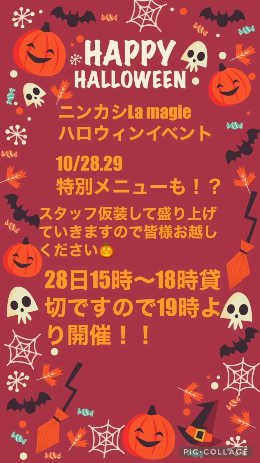 2023/10/18 ハロウィンお知らせ!! 2023/10/18ハロウィンお知らせ!!こんにちは😃今日はお知らせです!10/28.29にニンカシLamagieでハロウィンイベントを開催します!スタッフの仮装から特別メニューやお客様の仮装も大歓迎😙一緒に楽しみた…