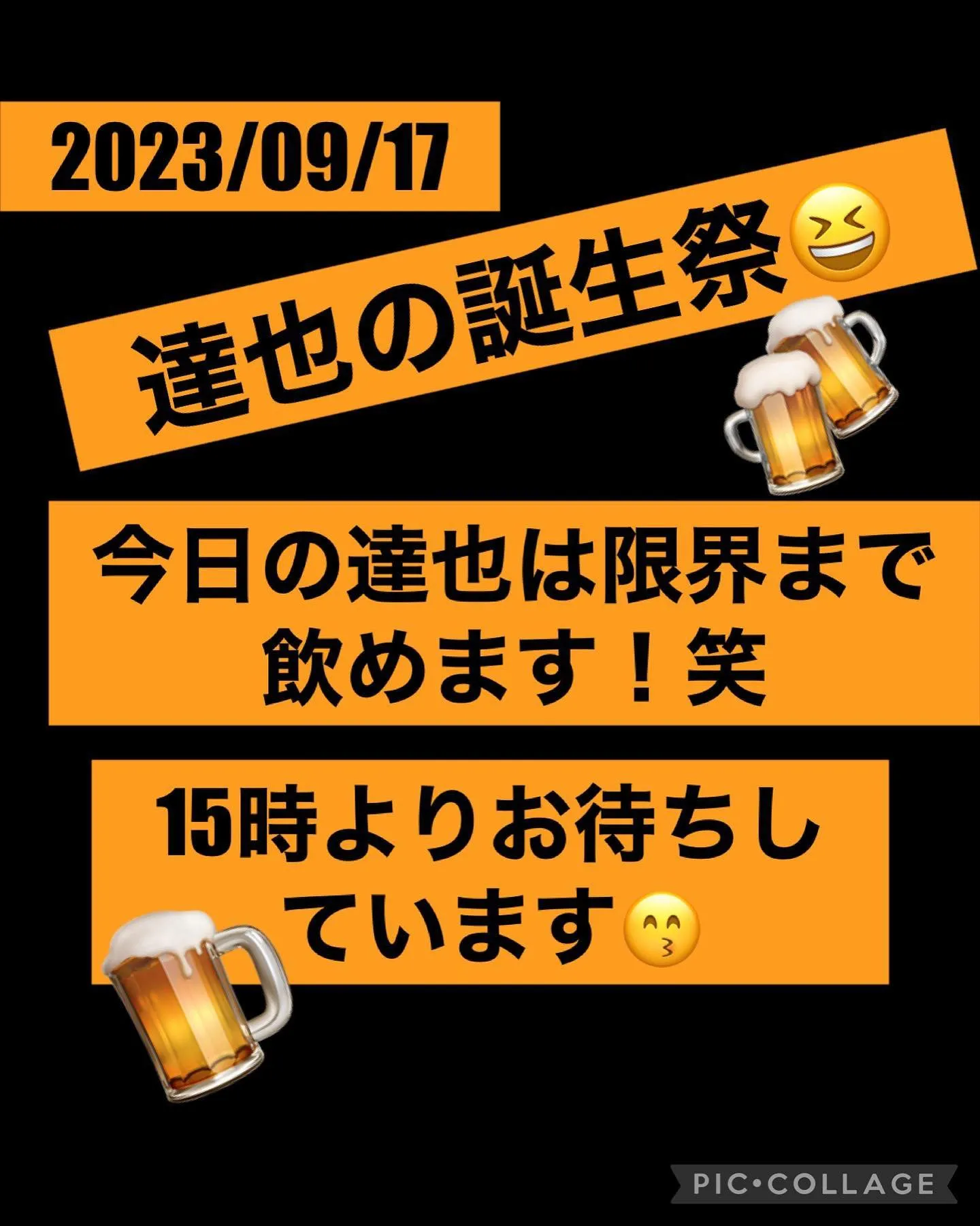 2023/09/17今日は達也の誕生日なんですこんにちは😃今日は達也誕生日です!!いつも頑張ってくれてる達也が楽しんでもらえるように飲めるように3人体制で今日はお待ちしてます♪乾杯しに来ていただけたらス…