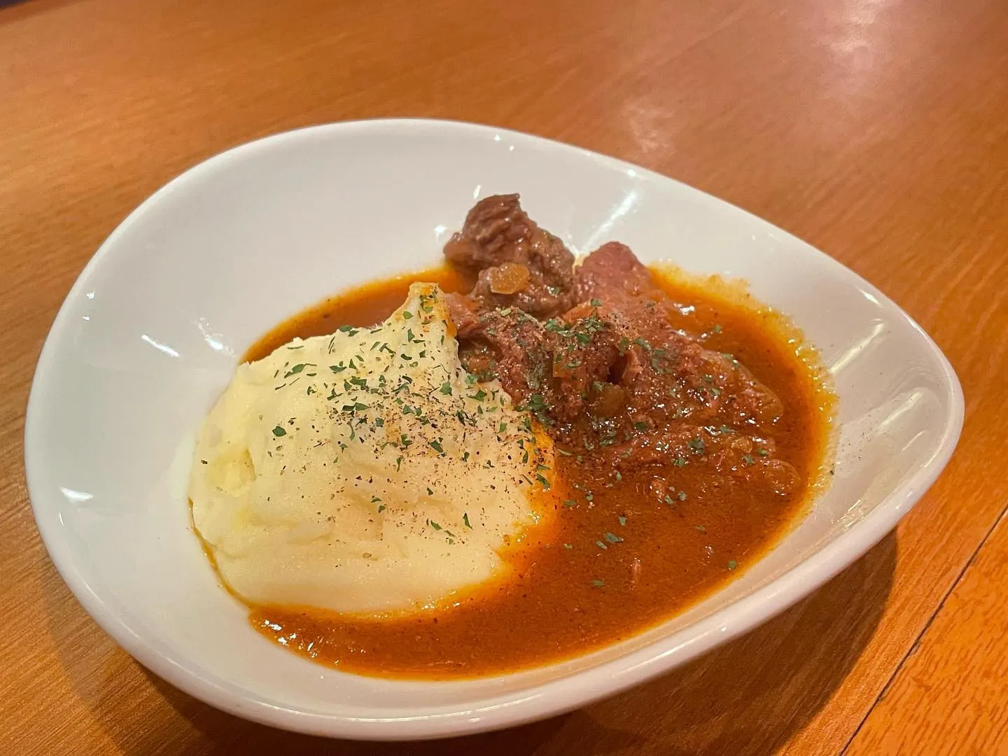 2023/09/23牛すじカレーマッシュポテト!!¥800こんにちは😃少し過ごしやすくなった気温になりましたかね??やってきましたよー大人気シリーズのフレンチシェフのカレー!今回は牛すじカレーと自慢のマッ…