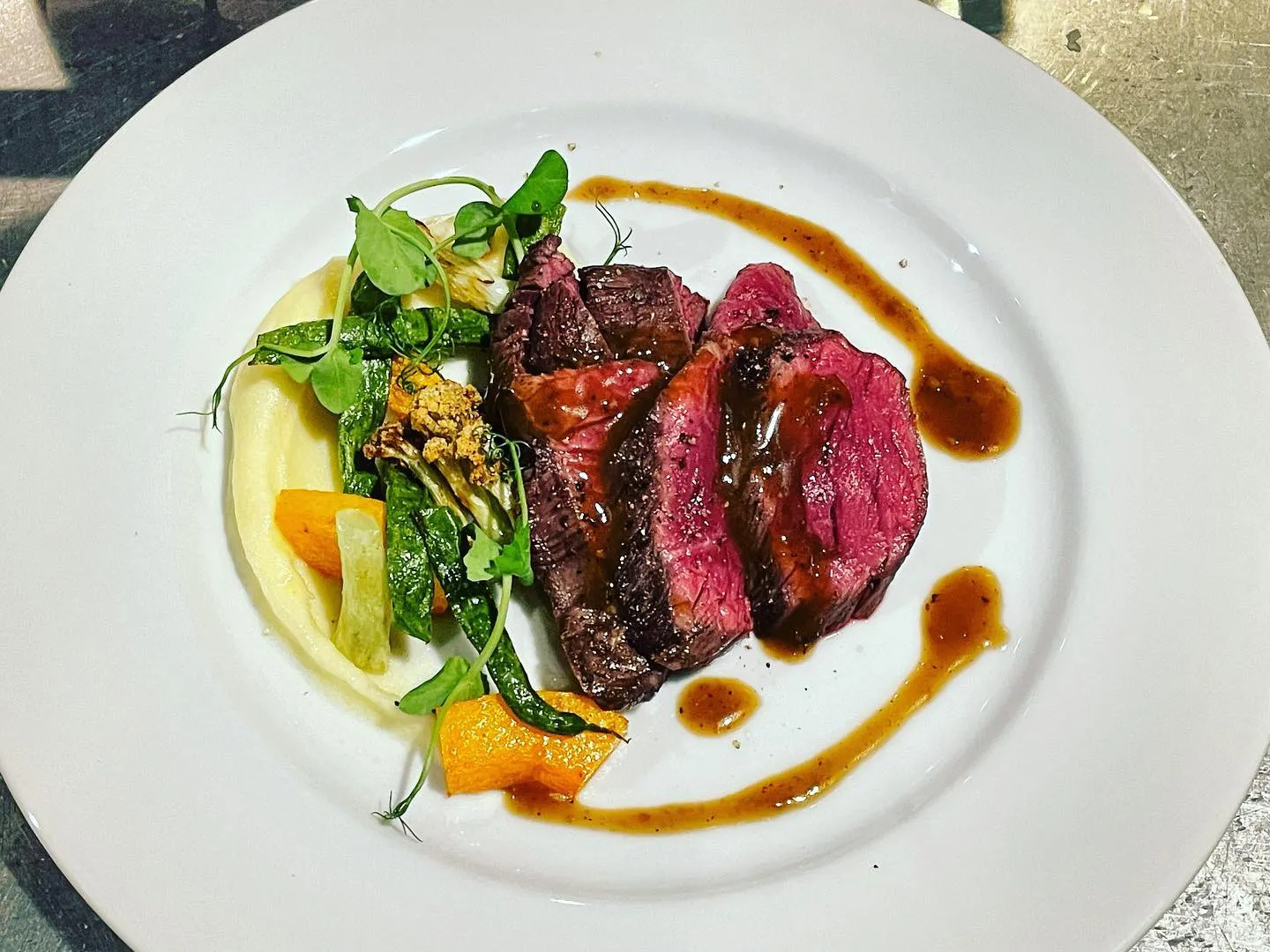 2023/08/12ミスジステーキ肉出汁のソース🍖こんにちは😃今回のステーキはフレンチらしくお皿に綺麗に盛り付けたスタイルでお出しします😆鉄板焼きも良いですがたまにはお皿で盛りたくなりました🤣本日15時か…
