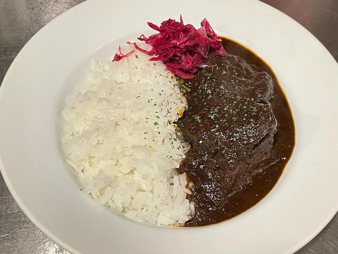 2023/07/25鹿肉を使った黒カレー🍛こんにちは😃本日よりフレンチシェフが作った渾身のカレーが始まります👌鹿のスネ肉を柔らかく煮込んで、香ばしさを活かした黒カレーはなんとも深みのある大人なカレーの味…