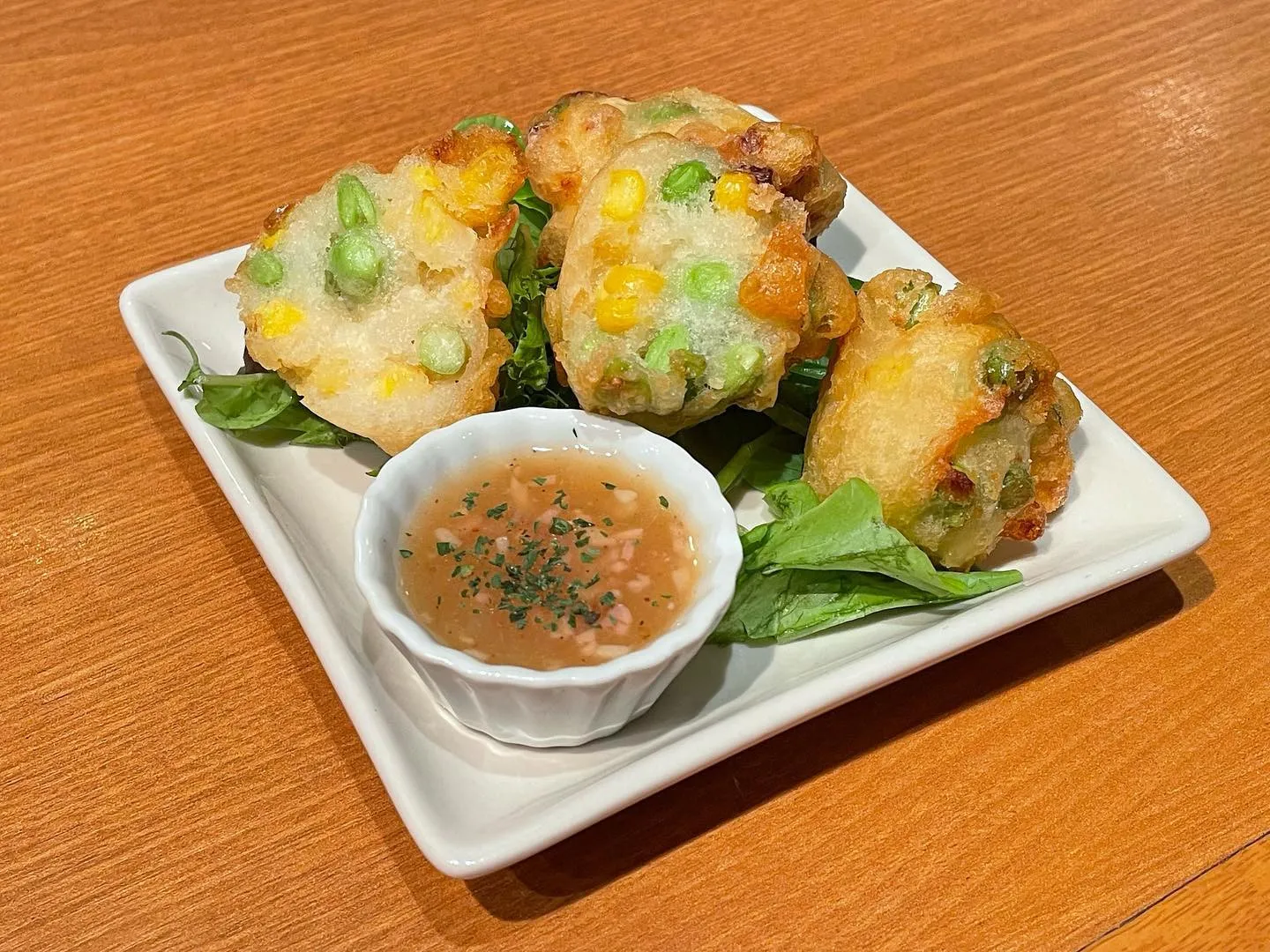 2023/07/07 枝豆とコーンのベニエ(フランスの天ぷら... 2023/07/07枝豆とコーンのベニエ(フランスの天ぷら)¥400こんにちは😃今日は新しくなったベニエを紹介!夏にぴったりな枝豆とコーンの洋風天ぷら🍤ソースにはお酒に合うようにパンチの効いたペペロン風ソ…