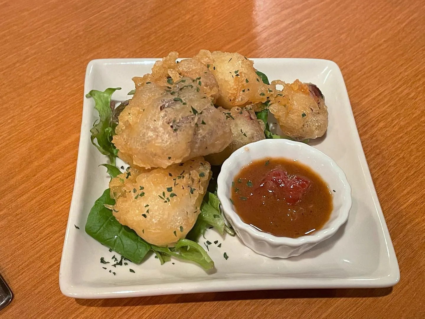 2023/06/16 タコベニエ(フランス風タコ天ぷら)¥7... 2023/06/16タコベニエ(フランス風タコ天ぷら)¥700こんにちは😌今日はタコベニエの紹介です🐙ベニエはフランスの天ぷらのようなもので、天ぷらよりも衣が膨らむため軽く食べれちゃう天ぷらです😚ソースには…