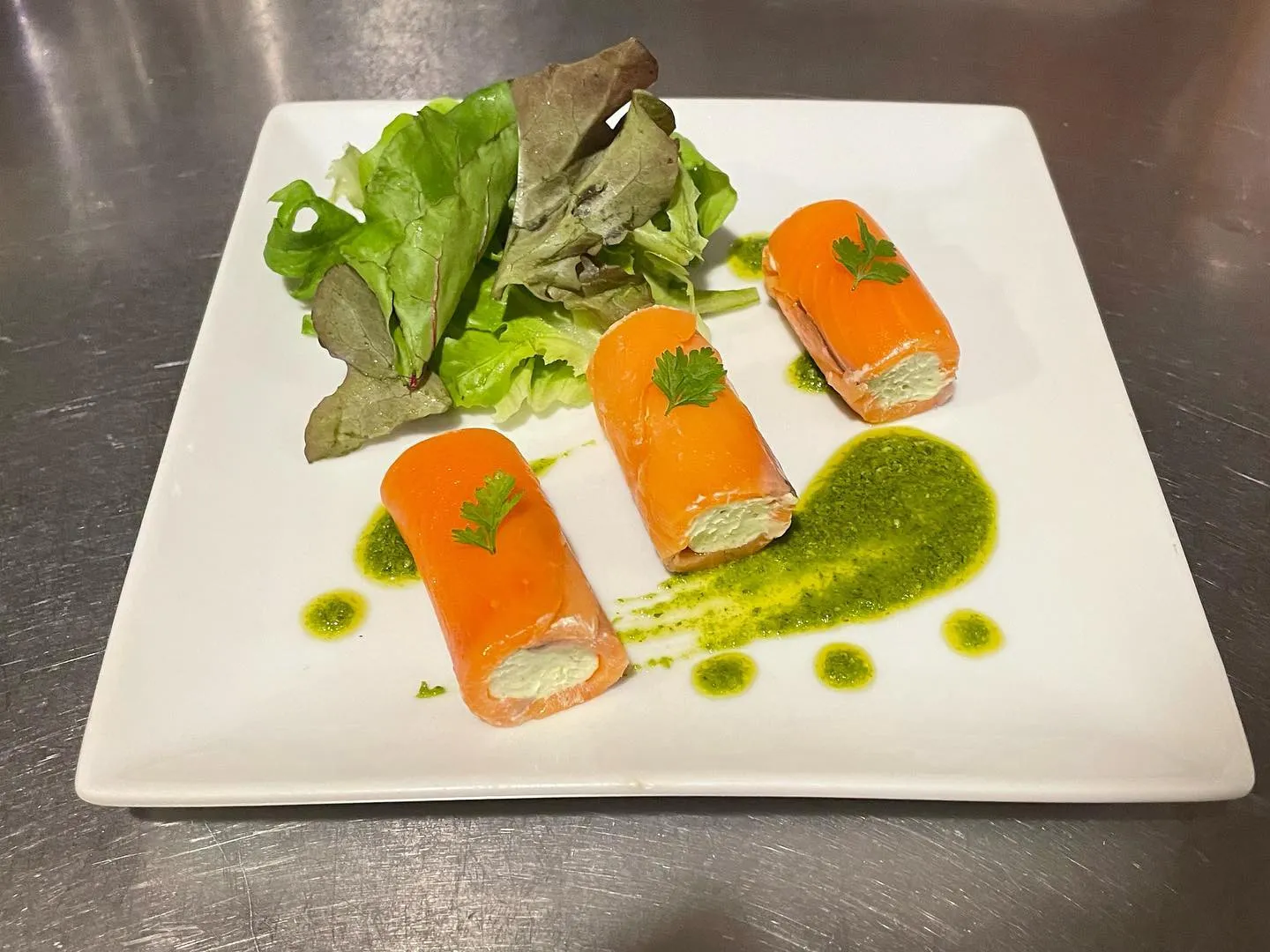 2023/05/12スモークサーモンのバジルクリームチーズ巻... 2023/05/12スモークサーモンのバジルクリームチーズ巻きこんにちは☺️今日は本日前菜のスモークサーモンのバジルクリームチーズ巻きです♪残りわずかとなっていますが料理の紹介としてフレンチらしいこのよ…