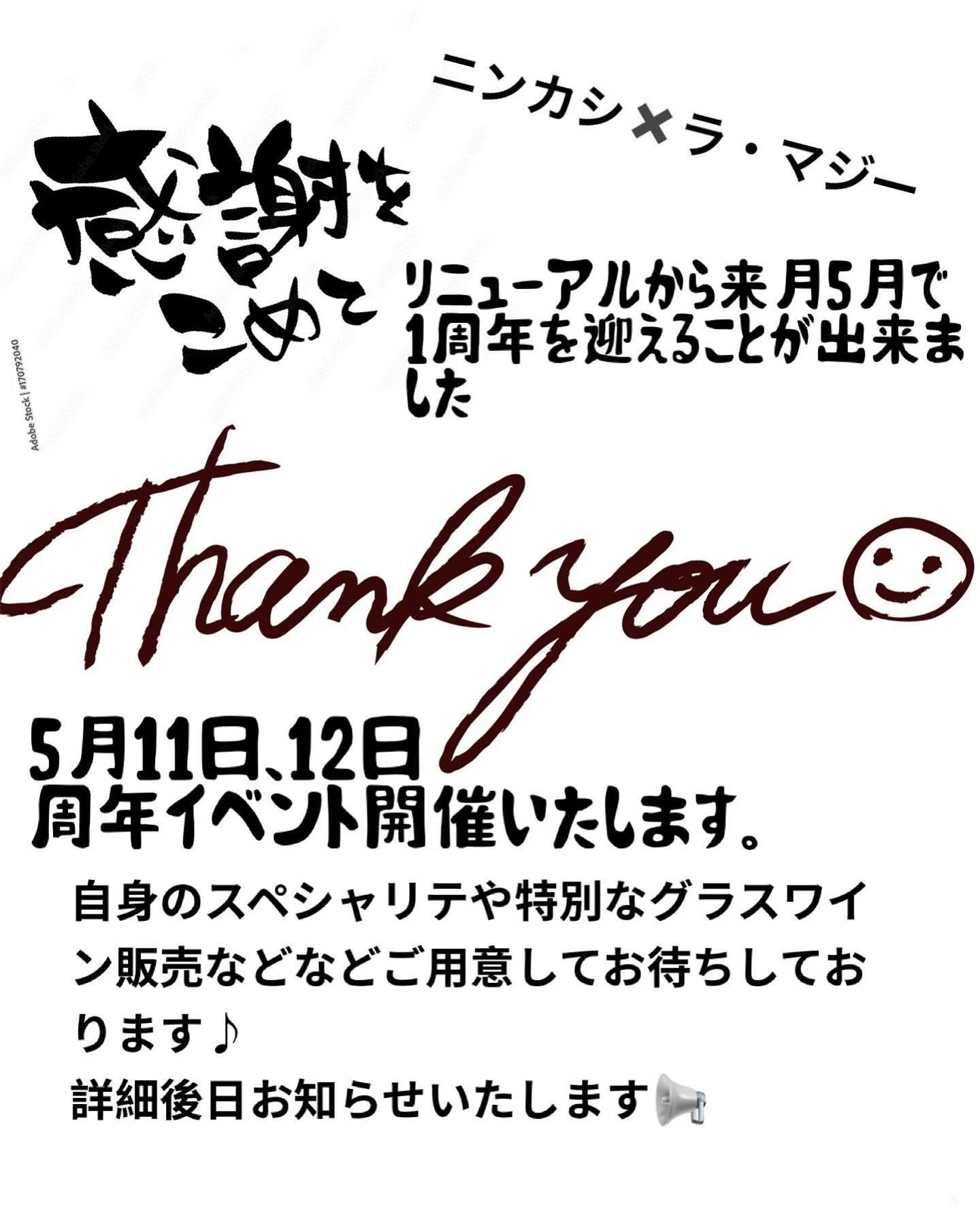 こんにちは😃4月も今日で終わりますね!!年明けてもう5月にはいってしまいます。早いですね!そして、5月はニンカシ×ラ・マジーとしてリニューアルオープンしてから1年が経ちました!無事に1周年を迎える…