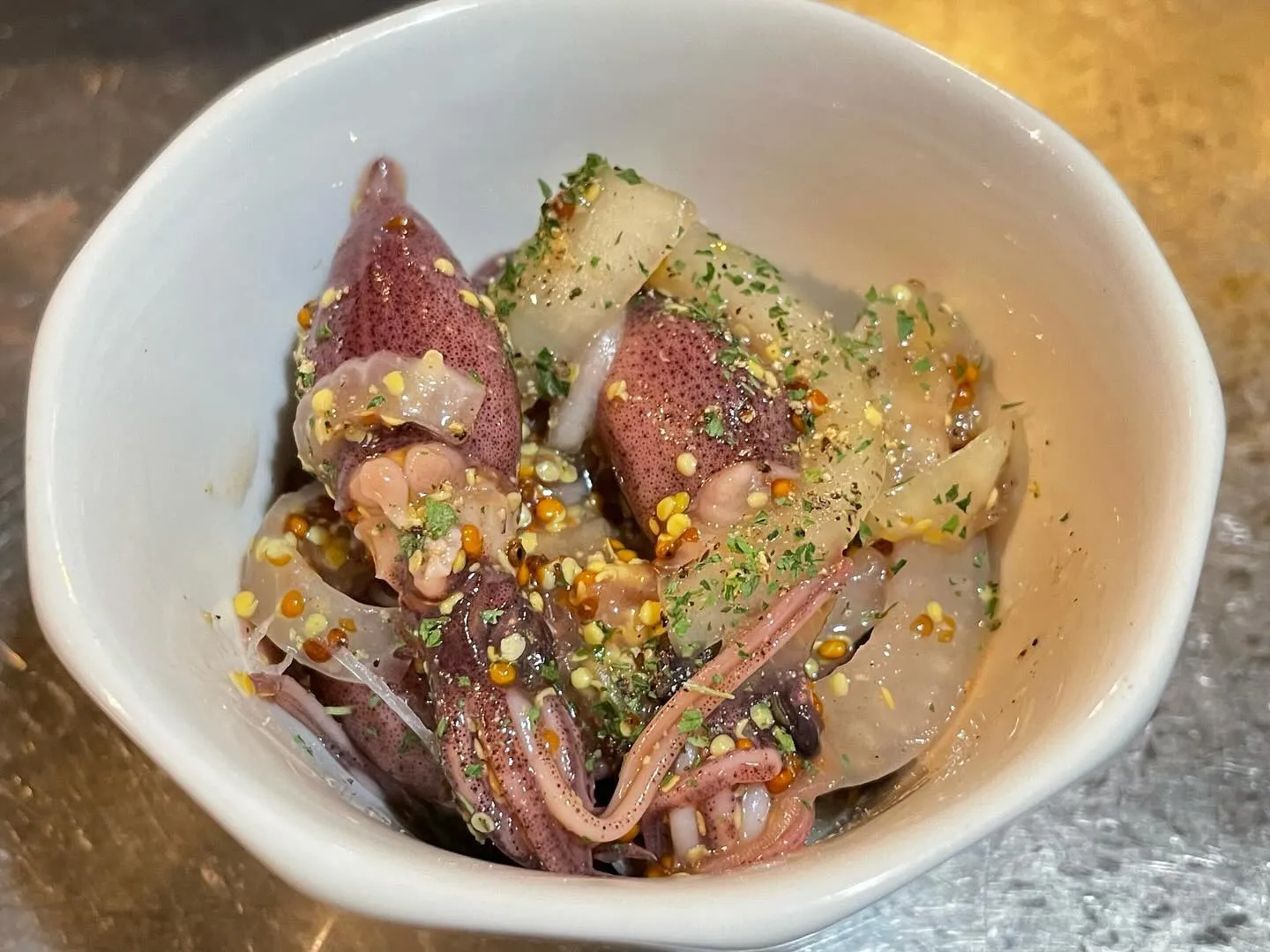 2024/05/02新玉ねぎとホタルイカの粒マスタード和えこんにちは😃今日はオススメのホタルイカです!!冷製前菜でさっぱりしていながらお酒が進む一品!!すぐに提供できるのも良いです♪暖かくなってきたの…